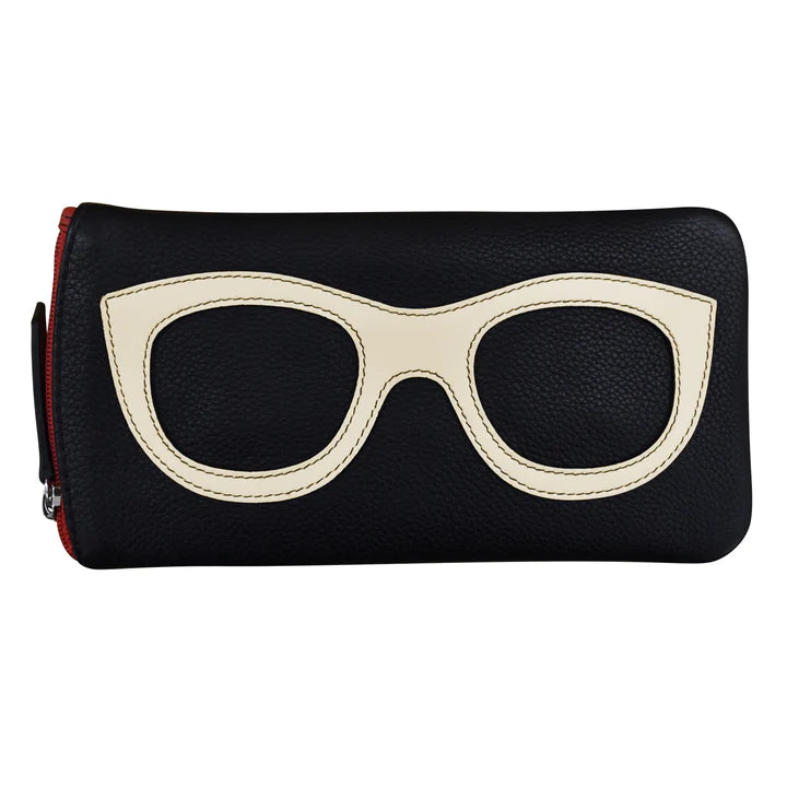 ILI NEW YORK LEATHER EYEGLASS CASE BLACK/BONE/RED