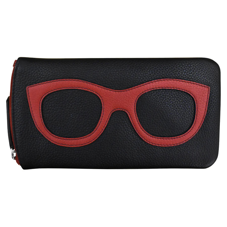 ILI NEW YORK LEATHER EYEGLASS CASE BLACK/RED