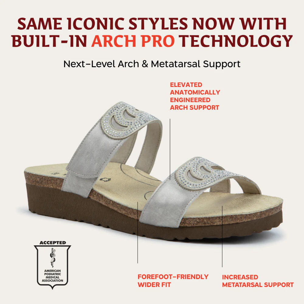 Building on Naot’s signature comfort, Arch Pro Technology takes support to the next level. This enhanced footbed blends Naot’s trusted craftsmanship with advanced cushioned technology to deliver heel-to-toe support, lasting comfort, proper alignment, and improved foot health.
