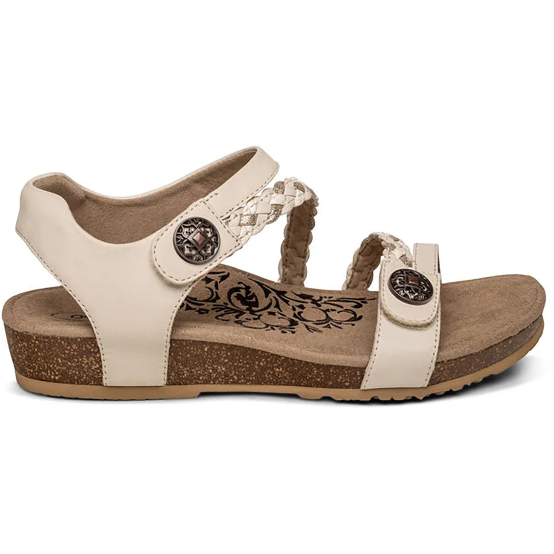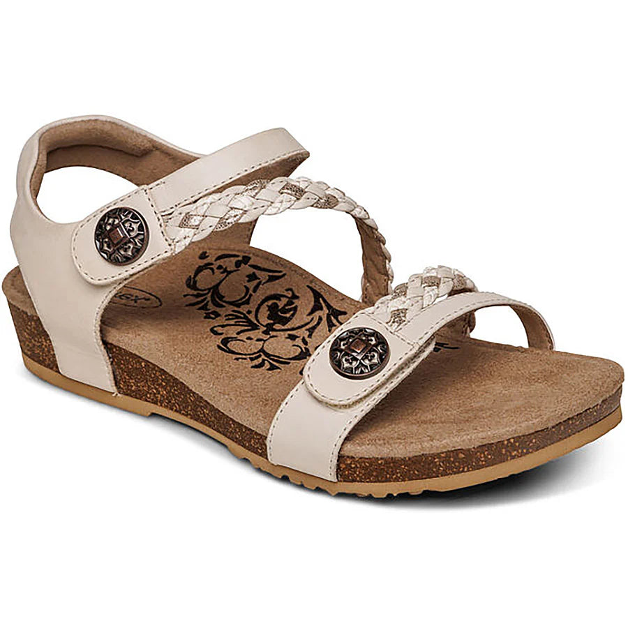 Our #1 best-selling sandal for a reason. The Jillian is constructed with Aetrex Signature Arch Support that is strategically placed to align your body. This fully adjustable sandal features memory foam cushioning, strategically placed straps to help relieve bunion discomfort, a padded heel for extra comfort, and an ultra-light cork midsole to help make it much easier to walk around all day. The signature braided detailing makes the Jillian both comfortable and stylish for all your summer adventures.
