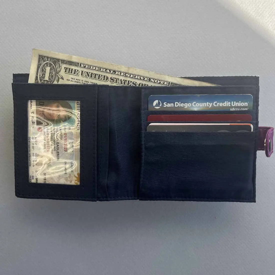 Cotton Canvas Screen Print - Snap Closure - Two Dollar Bill Pockets - Clear ID Cover - Multiple ID/Credit Card Pockets Size: 4" x 4"